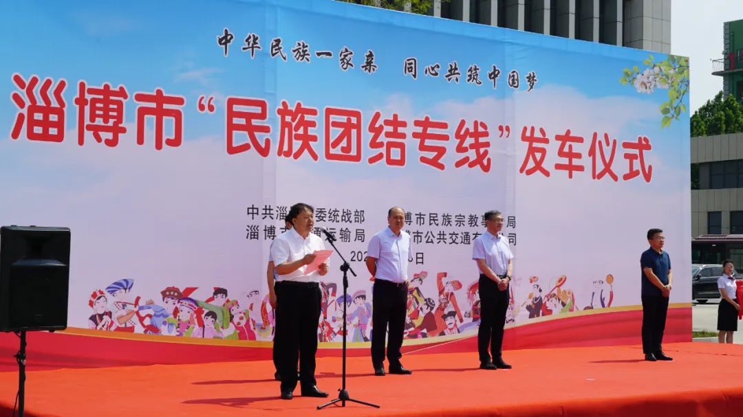 6月6日上午,淄博市“民族團(tuán)結(jié)號(hào)”公交專線發(fā)車儀式在淄博公交客運(yùn)出租分公司舉行,隨著10輛象征“56個(gè)民族親如一家”的公交車緩緩駛出,淄博市“民族團(tuán)結(jié)號(hào)”公交專線正式開通。