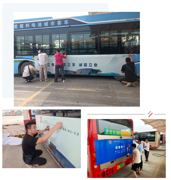 為進(jìn)一步發(fā)揮公交車(chē)作為城市文明窗口的力量,引導(dǎo)廣大市民共同參與到全國(guó)文明城市創(chuàng)建中來(lái),山東正晉公交廣告有限公司對(duì)公交車(chē)、公交候車(chē)亭等公益廣告進(jìn)行了全面查缺補(bǔ)漏。驕陽(yáng)似火的三伏天,廣告公司組織全體職工不分崗位,夜以繼日,全力投入到創(chuàng)城的工作中,與烈日較勁,與高溫抗衡,積極完成公益廣告發(fā)布任務(wù),用堅(jiān)守詮釋著責(zé)任和擔(dān)當(dāng),用汗水勾勒出高溫下美麗的風(fēng)景線。