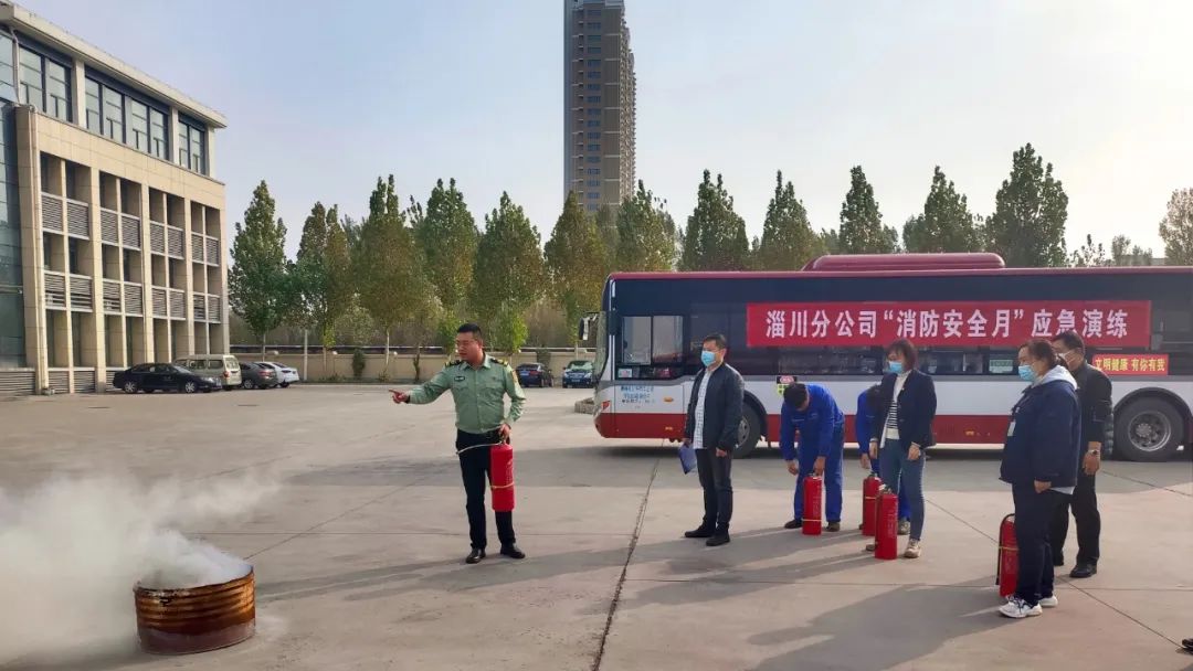 博山分公司組織值班值守人員在分公司停車(chē)場(chǎng)開(kāi)展“119”消防宣傳日應(yīng)急演練活動(dòng)。參演人員嚴(yán)格按照分工及流程分別向值班領(lǐng)導(dǎo)報(bào)告、報(bào)警,同時(shí)組織現(xiàn)場(chǎng)職工使用滅火器對(duì)虛擬著火點(diǎn)進(jìn)行初級(jí)滅火,有序高效轉(zhuǎn)移起火點(diǎn)附近的車(chē)輛駛至安全區(qū)域。