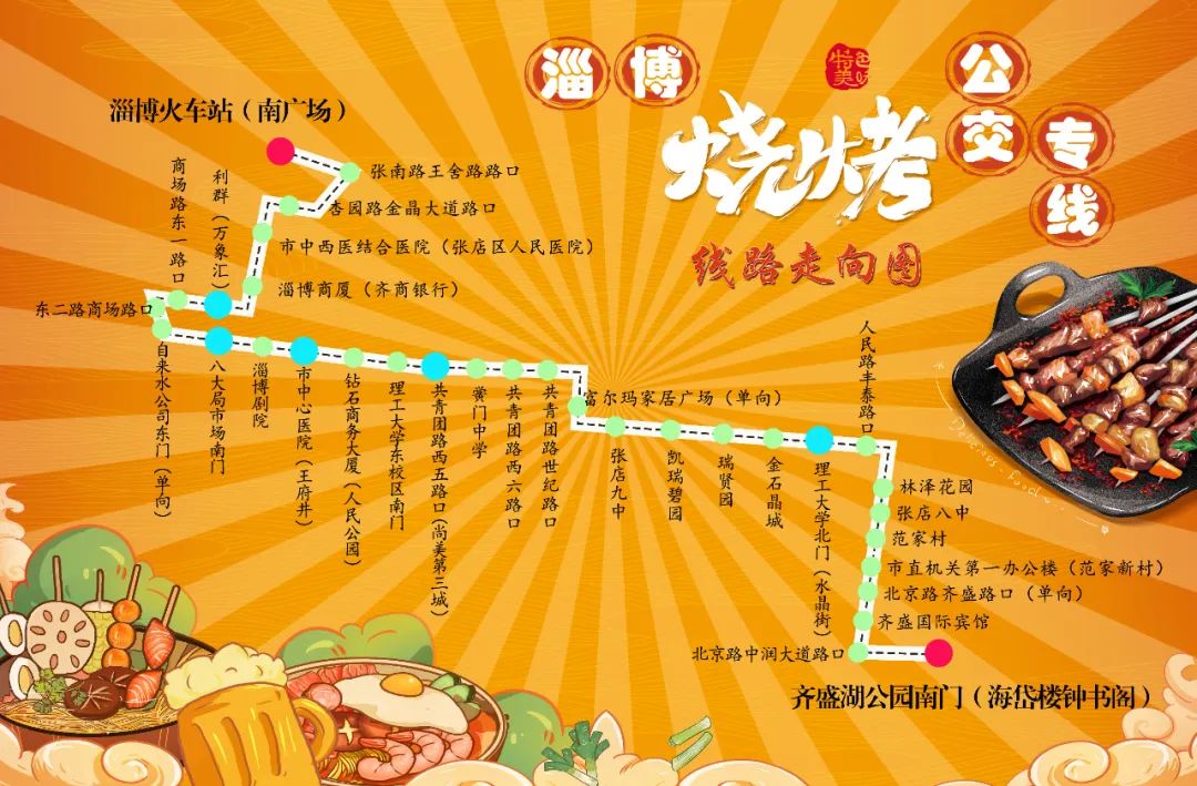 不同于單程往返的淄博燒烤專線,此次開通的是為市民游客打造的一條“特殊”常規(guī)線路,由淄博火車站(南廣場(chǎng))和齊盛湖公園南門對(duì)向發(fā)車,途經(jīng)萬(wàn)象匯、八大局市場(chǎng)、尚美第三城、水晶街、海岱樓鐘書閣及部分燒烤店等14個(gè)文旅美食“打卡點(diǎn)”,縷縷行行的街區(qū)、流光溢彩的高樓、源遠(yuǎn)流長(zhǎng)的人文、香飄滿城的“淄味”,足以讓來(lái)淄游客感受到大美淄博的熱情。