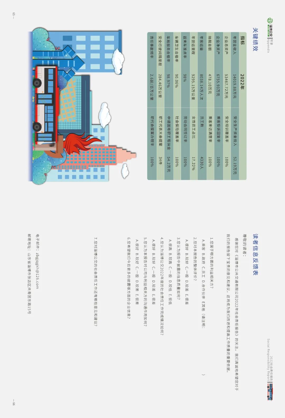 2023年7月4日,《淄博市公共交通有限公司2022年社會(huì)責(zé)任報(bào)告》正式發(fā)布,這是淄博公交正式對(duì)社會(huì)公開發(fā)布的第五份社會(huì)責(zé)任報(bào)告。