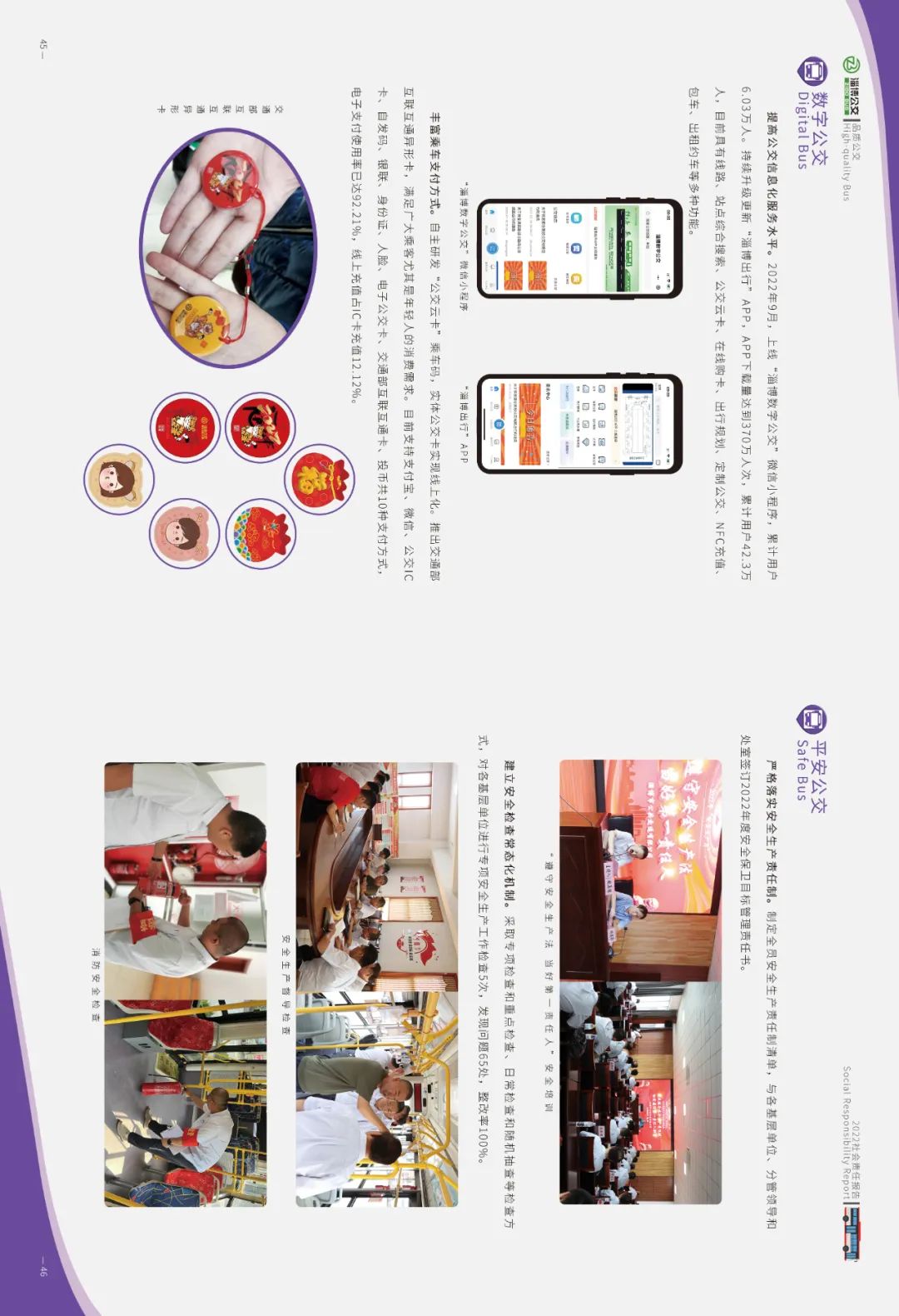 報(bào)告全文分為“領(lǐng)導(dǎo)致辭、關(guān)于我們、黨建引領(lǐng)、責(zé)任交流、品質(zhì)公交、以人為本、回饋社會(huì)、未來展望”八個(gè)板塊,全面反映了淄博公交履行社會(huì)責(zé)任的情況。2022年是黨的二十大召開之年,是實(shí)施“十四五”規(guī)劃的關(guān)鍵之年。淄博公交在市委、市政府的正確領(lǐng)導(dǎo)下,在市國資委、市交通運(yùn)輸局的大力支持下,以學(xué)習(xí)宣傳貫徹黨的二十大精神為主線,以推動(dòng)企業(yè)高質(zhì)量發(fā)展為主題,立足實(shí)際,創(chuàng)新思路,積極作為,努力打造人民滿意公交。