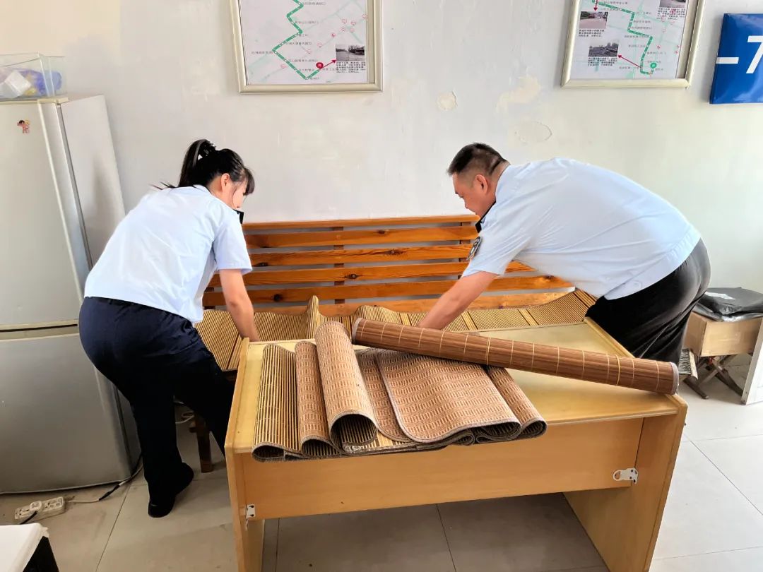 清洗空調(diào)濾網(wǎng)保證正常運(yùn)轉(zhuǎn),鋪設(shè)涼席營造舒適休息環(huán)境,熬煮綠豆湯為車長降溫防暑……開發(fā)區(qū)分公司將清涼送到了一線員工的休息室。分公司工作人員集體行動,為休息室的長凳鋪上涼席,確保車長們在工作間隙得到有效的休息和放松。