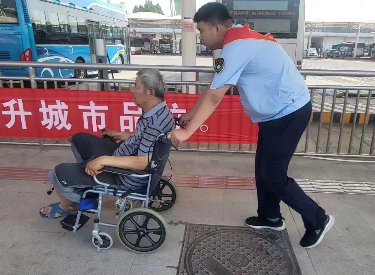 在公交東站,站務(wù)員看到一位老人步履蹣跚,隨即找來(lái)輪椅,推著老人找到站牌等候,并攙扶上車(chē)。“淄博公交的服務(wù)杠杠的!”一位準(zhǔn)備換乘的外地游客看到后豎起了大拇指。當(dāng)我們對(duì)需要“幫一把”的乘客伸出援助之手時(shí),這些貼心的服務(wù),便讓歸途有了溫度。
